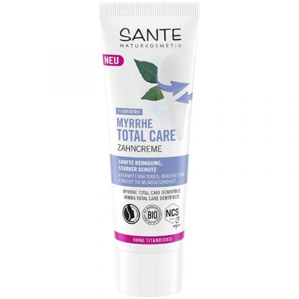 Sante Family pasta za zube sa fluorom štiti zube i neguje desni zahvaljujući bogatom kompleksu aktivnih sastojaka: natrijum fluorid, ksilitol i organska žalfija. Ekstrakt i ulje nane obezbeđuju prijatan ukus i svež dah. Sadrži natrijum fluorid – 1.200 ppm.